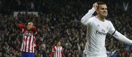 Real Madrid a câştigat categoric derby-ul cu Atletico, lidera din Primera Division, scor 3-0. Gazdele au deschis scorul printr-un autogol al lui Insua, în minutul 17. În repriza secundă, tânărul Jese Rodriguez, a marcat pentru 2-0, în minutul 57. Aceasta este a treia reuşită în trei meciuri la rând jucate de Real. Cu un alt autogol, de data aceasta al lui João Miranda (min. 73), Real a dus scorul la 3-0. Returul se va juca peste o săptămână pe Vicente Calderon, dar echipa lui Diego Simeone are şanse minime să se mai califice.
