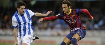 Câteva ore mai târziu, Barcelona s-a făcut de râs în Ţara Bascilor, pierzând cu 3-1 disputa de la San Sebastian cu Real Sociedad. Catalanii nu au câştigat pe stadionul Anoeta din anul 2007. Pentru catalani a marcat Messi (34) în timp ce golurile gazdelor au fost semnate de Alex Song (aut.32), Griezmann (54) şi Zurutuza (59). În aceste condiţii, Real a preluat şefia în clasament Spania Primera Division, în timp ce Barcelona a rămas în urmă cu trei puncte. Catalanii ar putea fi depăşiţi şi de Atletico Madrid, duminică, dacă aceasta va câştiga sau va remiza cu Osasuna.