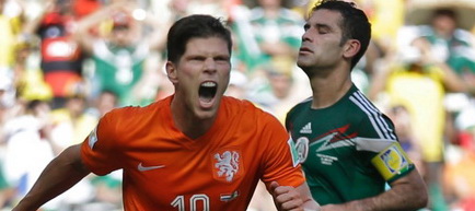 Portocală imediat după reluare, rezistând apoi eroic (cu portarul Ochoa în frunte) și norocos presiunii furibunde a olandezilor. Până spre final. Până la două minute distanță de epuizarea timpului regulamentar, când Sneijder a izbutit egalarea. Și în extra-time, 90+4!, a căzut măciuca peste creștetele mexicane, Olanda fiind prima reprezentantă a Europei în faza următoare, prin penalty transformat în finalul-finalului unei întâlniri desfășurate pe zi în care acul termometrului s-a îndreptat către 40 de grade C.