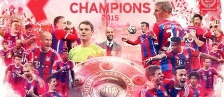 Bayern München este matematic câștigătoarea titlului de campioană a Germaniei, în ediția 2014-2015. Bavarezii au devenit campioni, duminică, într-o zi în care nici măcar nu au jucat și asta pentru că VfL Wolfsburg, ocupanta locului secund, a pierdut, scor 0-1, pe terenul echipei Borussia Mönchengladbach, în etapa a 30-a din Bundesliga. Bayern învinsese, sâmbătă, pe Hertha, cu scorul de 1-0.