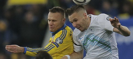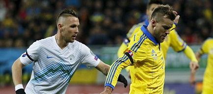 Naționala Ucrainei este aproape calificată la Campionatul European din 2016, după ce sâmbătă a luat o opțiune serioasă pentru a ajunge acolo, după 2-0 cu Slovenia, pe teren propriu, în prima manșă a barajului. Andriy Yarmolenko a deschis scorul în minutul 22, iar Yevhen Seleznyov a majorat diferența de pe tabelă în minutul 54. Meciul s-a jucat la Lvov, arena pe care evoluează în exil, echipa lui Mircea Lucescu, Șahtior, din cauza războiului de la Donețk.