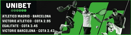 Cotele la pariuri La Liga afișate la Unibet arată excelent pentru acest duel de 5 stele. Victorie Atletico 2.95, Egalitate 3.45, Victorie Barcelona 2.43. De luat în calcul și cota de 1.75 pentru pariul Ambele marchează, în condițiile în care ultimele 2 partide directe s-au încheiat cu 4 și 5 goluri marcate.