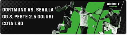 În tur, Sevilla a deschis scorul, dar la pauză era deja 3-1 în favoarea germanilor. În acest context, este clar că ne putem aștepta la un nou meci cu multe goluri de ambele părți, deci putem selecta la pariuri online UCL un Pariu Combo din oferta Unibet: Ambele Înscriu & Peste 2.5 goluri - cotă 1.80.