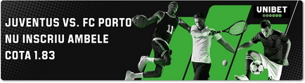 Juventus nu a primit gol în 7 din ultimele 8 partide jucate acasă în toate competițiile și a dovedit o formă bună în toate competițiile interne din Italia. Partida cu Porto ar putea fi una închisă, în care se va califica echipa care va greși mai puțin. Pont la pariuri online: cotă 1.83 la Unibet pentru varianta Nu înscriu ambele echipe.