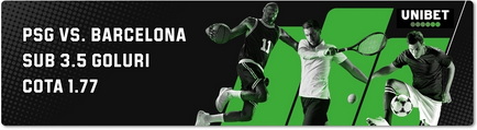 Faptul că Barcelona a pierdut atât de categoric (1-4) meciul tur a fost o mare surpriză în optimi, chiar dacă PSG este în prezent una dintre cele mai puternice formații din Europa și luptă pentru titlu și în Ligue 1. Este puțin probabil ca formația catalană să mai poată întoarce rezultatul, cota pentru calificarea Barcelonei fiind acum 15.00. Ne putem aștepta la o formație PSG care să încerce să închidă atacurile spaniolilor, astfel că ar fi rațional un pariu pe Sub 3.5 goluri, la o cotă foarte bună, 1.77 la Unibet.