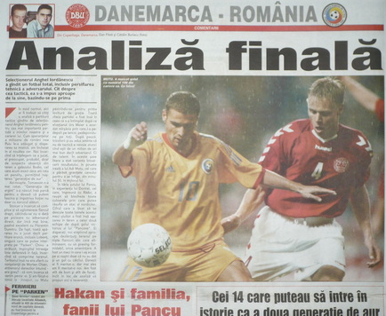 România pierdea dramatic calificarea la EURO 2004, ȋntr-un meci decisiv desfăşurat la Copenhaga. Ȋntr-o partidă ȋn care avea nevoie doar de victorie, echipa naţională a condus cu 2-1 până ȋn ultimele secunde ale prelungirilor.