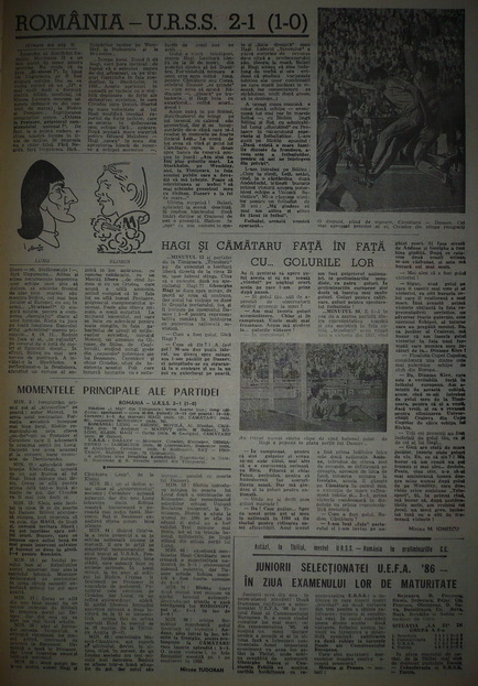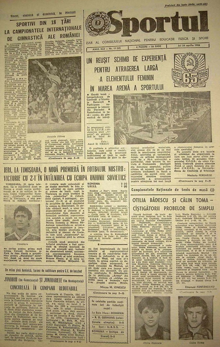 Ȋn urmă cu 40 de ani, pe 23 aprilie 1986, România ȋnvingea la Timişoara, pentru prima dată, selecţionata Uniunii Sovietice. Ȋn faţa a 40.000 de spectatori, Gheorghe Hagi şi Rodion Cămătaru marcau golurile unui succes ȋn faţa unei formaţii care, după mai puţin de o lună şi jumătate, avea să zdrobească Ungaria cu 6-0 la Mondialul din Mexic.